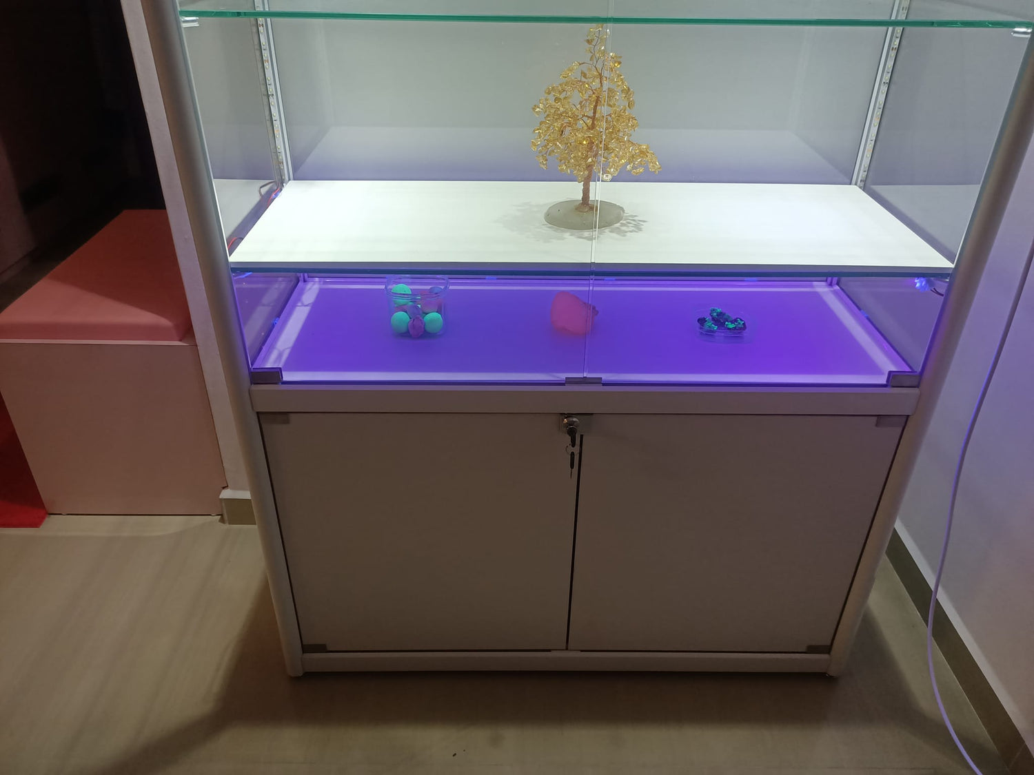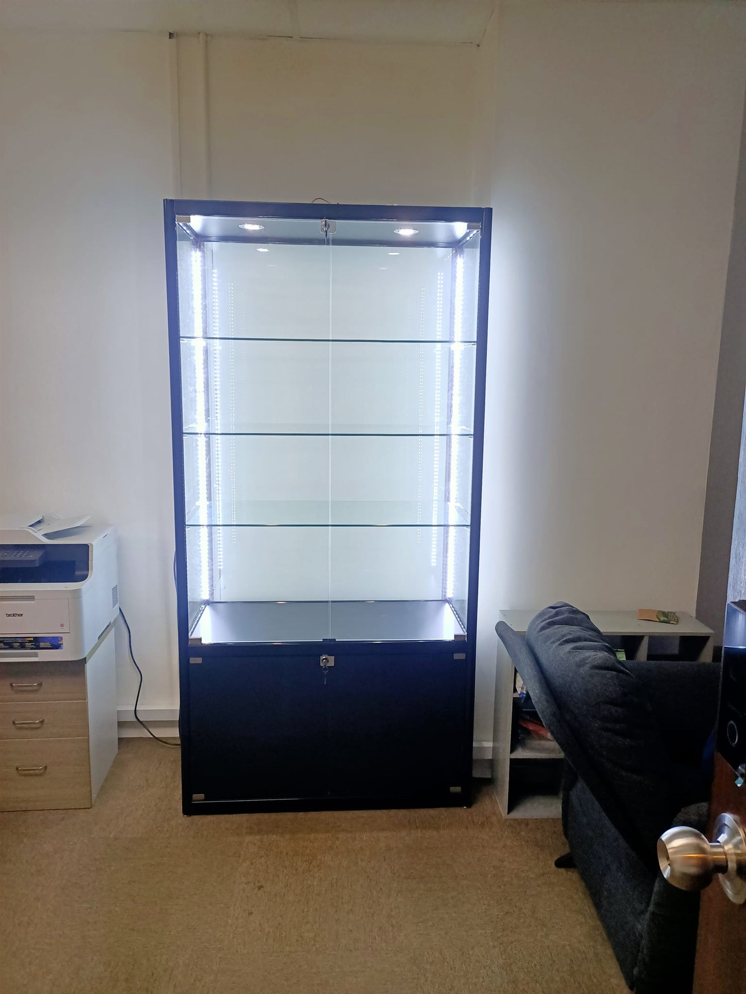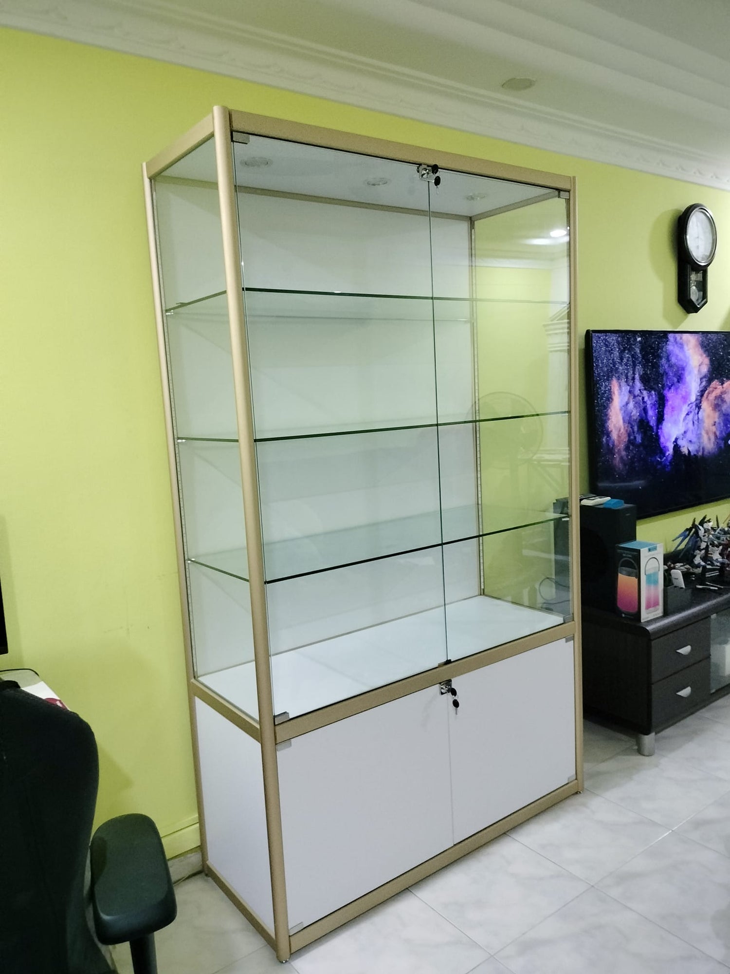 Combine style and functionality with this full-glass cabinet featuring a spacious storage compartment below. Perfect for keeping essentials organized while elegantly showcasing your favorite items.