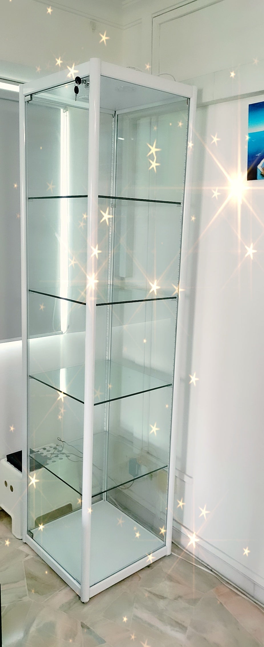 Crafted entirely from glass, this cabinet offers 360° visibility. Its square shape ensures your items are highlighted from every perspective, making it ideal for proud collectors.
