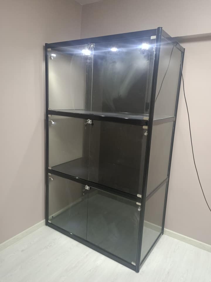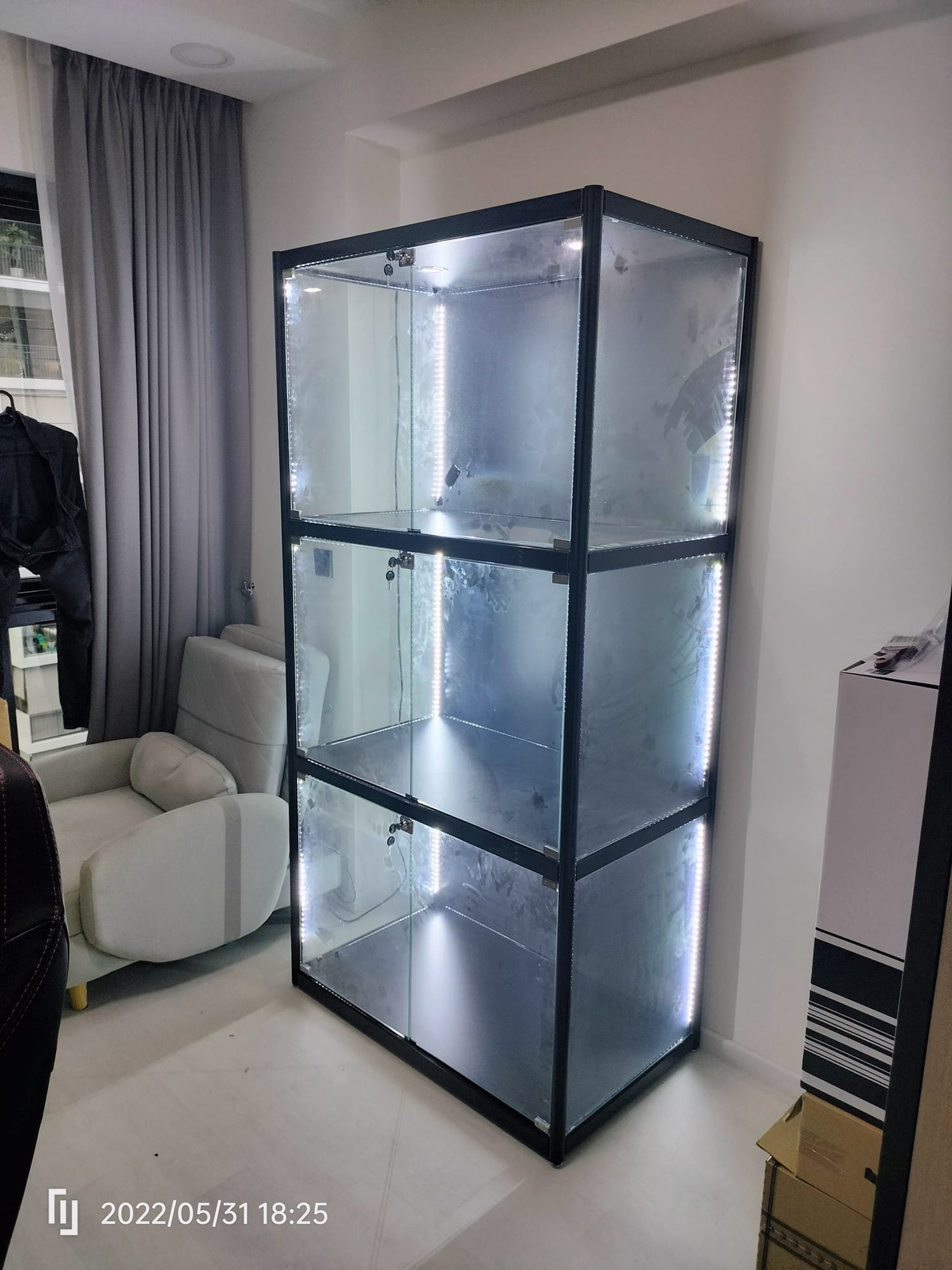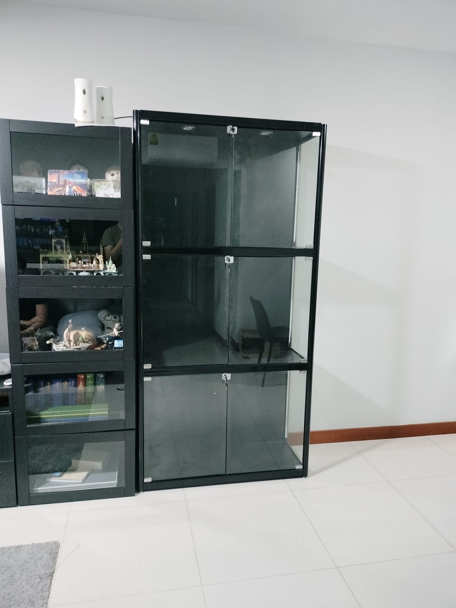 Designed for both function and style, this cabinet offers three compartments for your needs. Its MDF backing enhances stability, making it perfect for storing or showcasing your treasures.